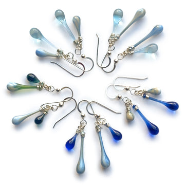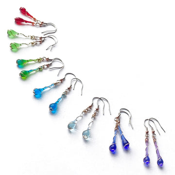 Sun-melted glass earrings, necklaces and bracelets, set in recycled Argentium silver