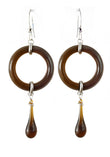 100% recycled glass earrings, from the sun-melted glass drops and sliced rings to the sterling silver metalwork and hooks. Even the packaging is recycled!