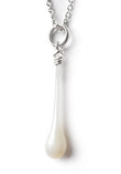 A pendant necklace is the perfect low-key compliment to dress up your everyday wardrobe. This simple yet elegant glass pendant, is a cloudy white - opalescent tones frozen forever in an elegant drop of glass.