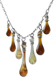 Seven handmade glass droplets drip from an 18" chain of sparkling silver in this exquisite necklace design. Get ready for Fall and make a delicate statement in tones of champagne and earthy brown.- Droplet lengths: 3/4" - 1 1/4" (1.9 - 3.2 cm), dangling on an 18"